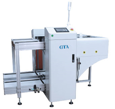 此设备适用于SMT产线配合在线AOI收取线路板用,当AOI检测出有问题的线路板,则自动进入NG料框;当AOI检测没有问题的线路板时,则直接进入OK料框.